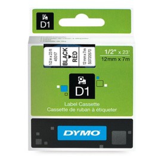 Dymo 45017 12mm x 7m Black on Red Tape