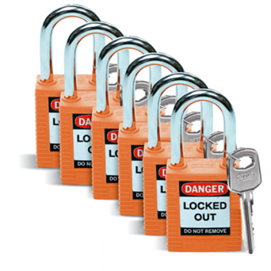 38 mm SAFETY PADLOCK ORANGE Keyed Different 6 PK