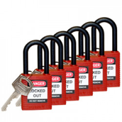 38mm SAFETY PADLOCK RED KD 6 PK